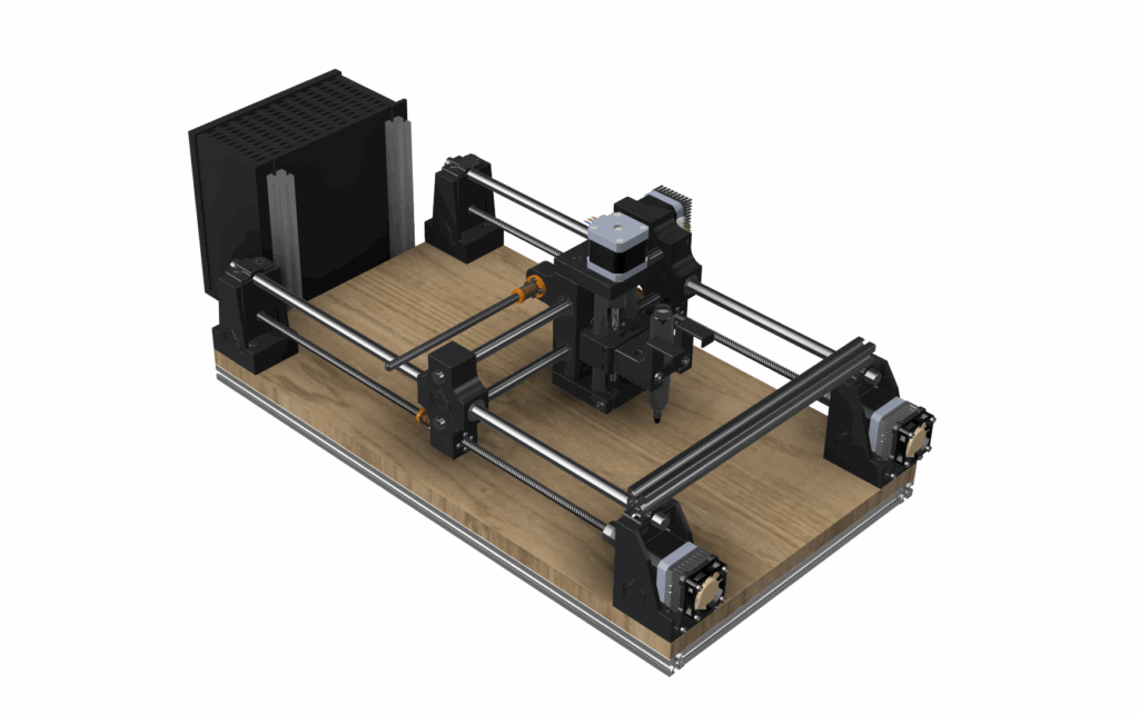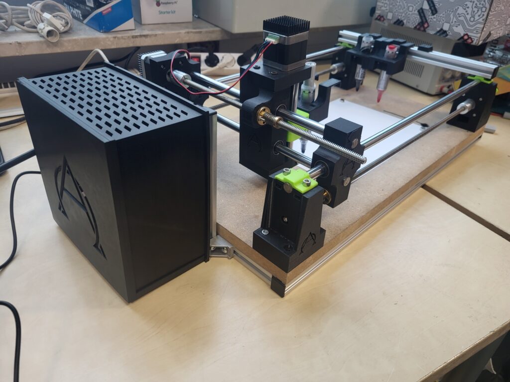 - konstrukcję mechaniczną: lekka rama, mechanika osi X/Y, uchwyt na narzędzie (długopis/marker), prosty mechanizm opuszczania i podnoszenia pisaka,
