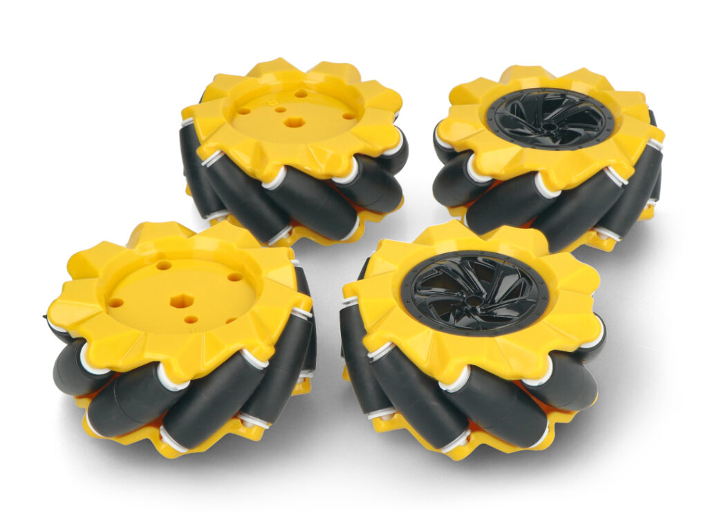 Najczęściej spotykaną konfiguracją pojazdów z kołami szwedzkimi jest wersja czterokołowa, która ułatwia zachowanie stabilności i przyczepności, a jednocześnie pozwala na manewrowanie w różnych kierunkach. W takiej konstrukcji ważne jest skompletowanie zestawu dwóch lewych i dwóch prawych kół. Ich poprawny montaż wymaga konfiguracji, w której osie rolek, patrząc z góry na podwozie, tworzą wzór przypominający literę X. Dla zachowania pełnej kontroli nad kierunkiem ruchu koniecznie jest zapewnienie stałego kontaktu wszystkich kół z podłożem.