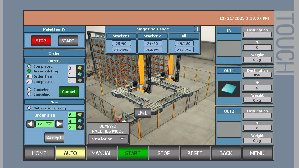 Projekt ten zapoczątkowała praca dyplomowa naszego członka, Grzegorza Cyby, który opracował zaawansowany algorytm sterowania oraz symulację w ramach platformy Factory IO. Chociaż symulacja zakończyła się sukcesem, uznaliśmy, że najlepszym sposobem na prawdziwe sprawdzenie naszych umiejętności będzie przeniesienie tych pikseli do świata rzeczywistego. W tym celu budujemy niestandardowy system mechaniczny, zaprojektowany do wykonywania zadań związanych z transportem i paletyzacją z wysoką precyzją. Szkielet naszego magazynu zbudowany jest z profili aluminiowych V-slot oraz niestandardowych części, które sami wyprodukowaliśmy przy użyciu technologii druku 3D. Sercem całego systemu jest sterownik PLC, który komunikuje się z panelem HMI, umożliwiając nam przekładanie poleceń użytkownika na ruchy w czasie rzeczywistym dla naszych silników krokowych i serwosilników.